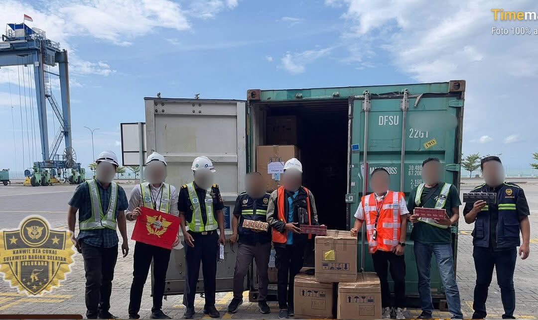 Makassar. 15-10-2025 - Sinergi Kantor Wilayah (Kanwil) Bea Cukai Sulawesi Bagian Selatan (Sulbagsel) bersama Bea Cukai Makassar menggagalkan peredaran 3,6 juta batang rokok tanpa pita cukai di Pelabuhan Makassar New Port pada Sabtu (27/09).
