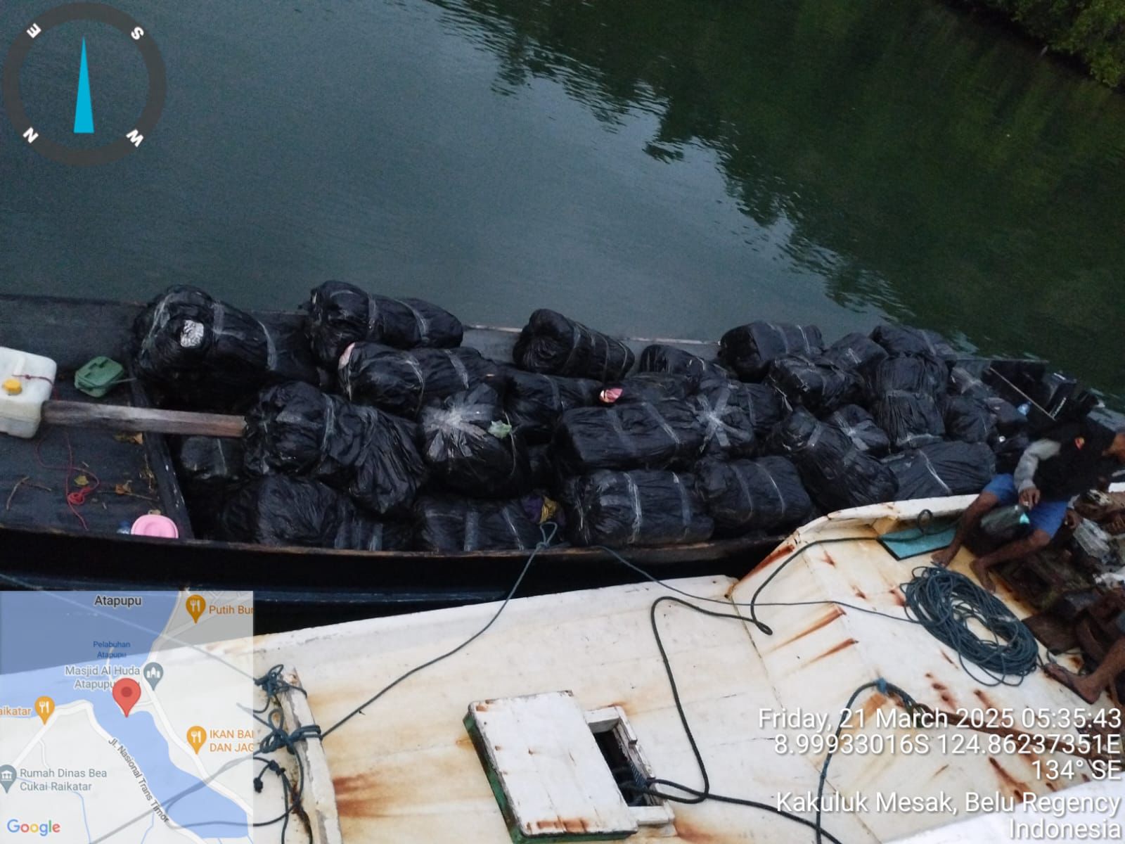 Belu, 24-02-2025 - Bea Cukai Atambua gagalkan upaya penyelundupan 70 bale pakaian bekas di perairan Pasir Putih, Kabupaten Belu, Jumat (21/03). Dalam penindakan itu, Bea Cukai Atambua bersinergi dengan Satgas Pamtas RI-RDTL Sektor Timur Yonif 741/GN, Kodim 1605 Belu, dan Bais TNI.