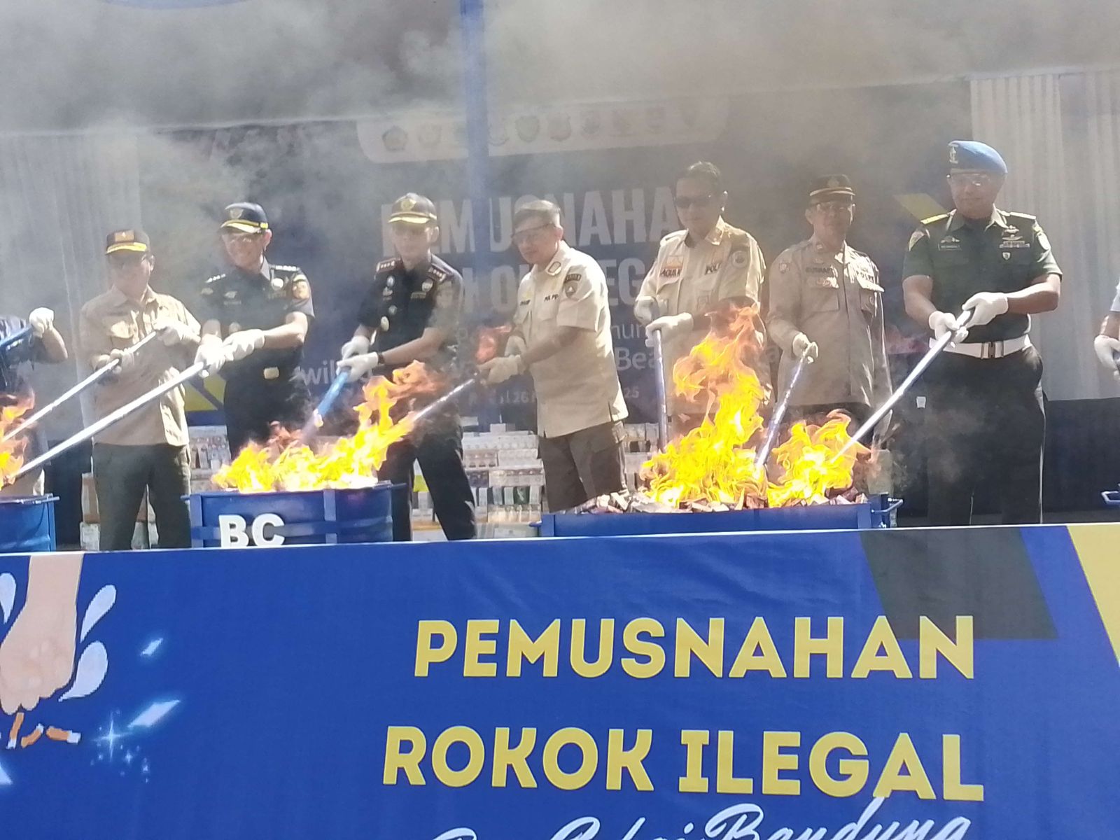 Kepala Kanwil Bea Cukai Jawa Barat, Finari Manan mengungkapkan barang yang dimusnahkan berjumlah 9.233.640 batang rokok ilegal senilai Rp13,7 miliar dengan potensi kerugian negara sebesar Rp6,8 miliar akibat tidak dibayarnya cukai. "Seluruh barang tersebut merupakan hasil pengawasan dan penindakan bersama Bea Cukai, pemerintah daerah, perusahaan jasa pengiriman, dan berbagai instansi terkait di wilayah Jawa Barat," ujarnya.