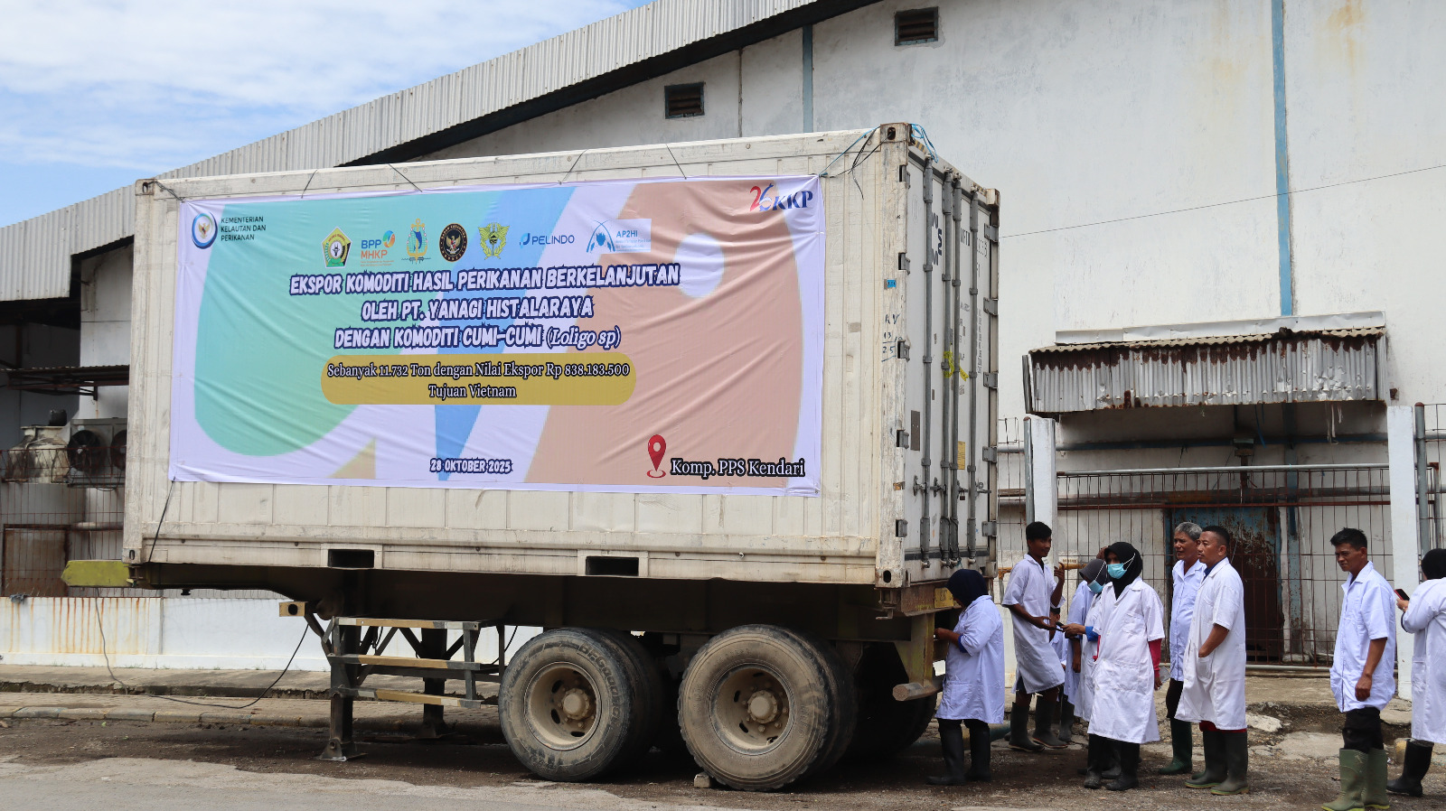 Kendari, 30-10-2025 - Perusahaan asal Kendari, Sulawesi Tenggara, PT Yanagi Histalaraya berhasil melakukan ekspor 11,73 ton cumi-cumi ke pasar Vietnam. Pelepasaran ekspor dilakukan pada Selasa, 28 Oktober 2025 oleh Wakil Gubernur Sulawesi Tenggara, Ir. Hugua, M.Ling, di Pelabuhan Perikanan Samudra Kendari.