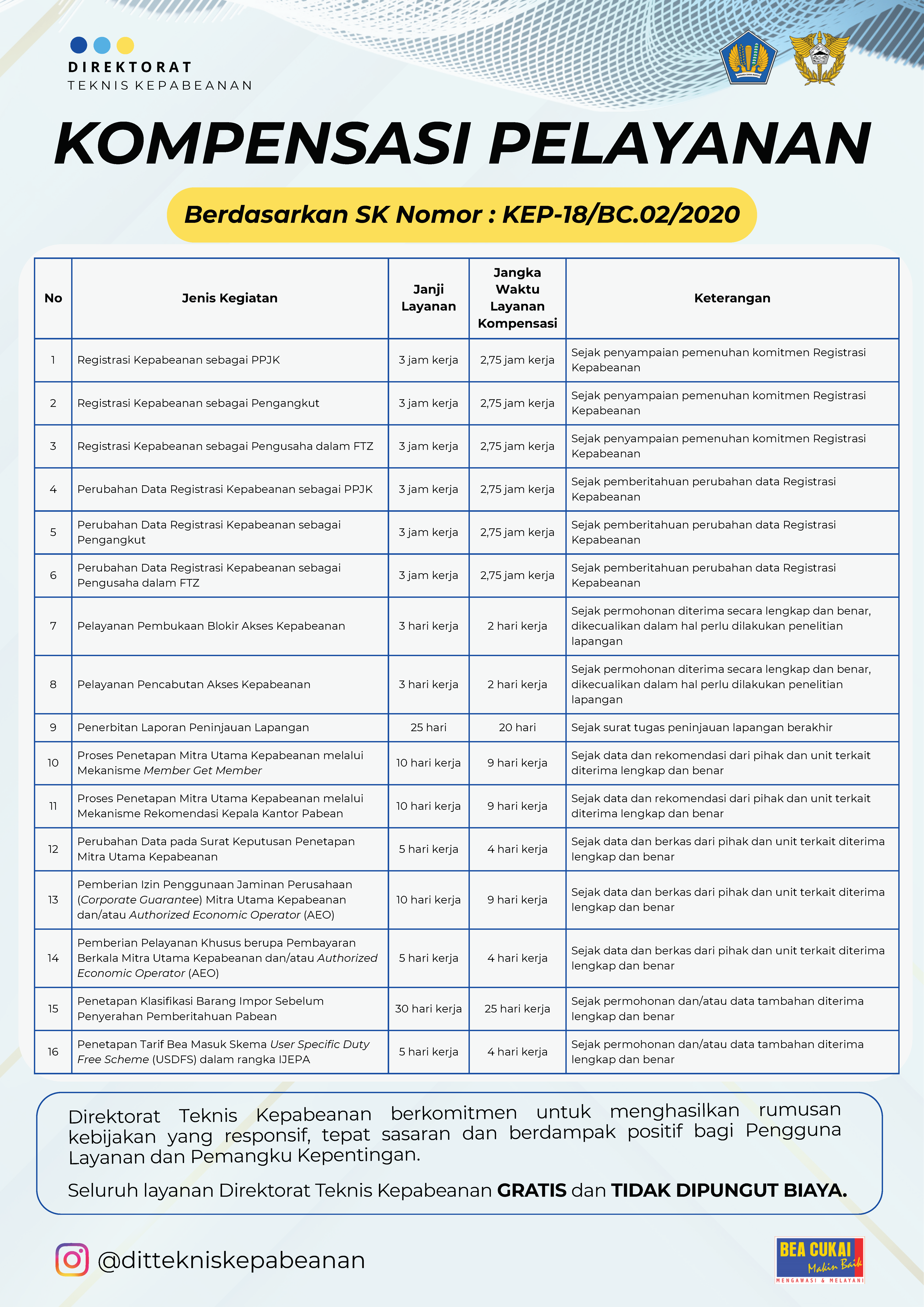- Pelayanan Penyelesaian Barang Pribadi Penumpang Yang Tiba sebelum atau sesudah kedatangan Penumpang yang diselesaikan dengan PIBK